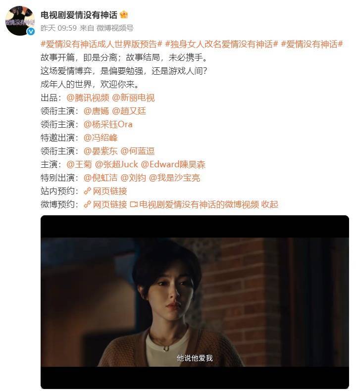 《爱情没有神话》发预告,唐嫣赵又廷演情侣阵容强悍