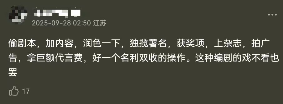 但编剧秦雯,因为被爆出不少负面新闻,蛐蛐靳东、陈道明以及游本昌等人,风评受损。